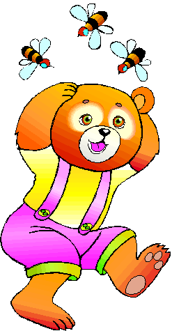 "Hmmm...hmmmm," Brave Little Bear pondered out loud, as the busy bees went "Bzzz, Bzzzz...." All of a sudden, Brave Little Bear stood up and jumped for joy. He clapped has paws and ran around in a little circle, full of joy and very proud of himself. He had thought up a plot to capture the honey without getting stung by the busy bees!